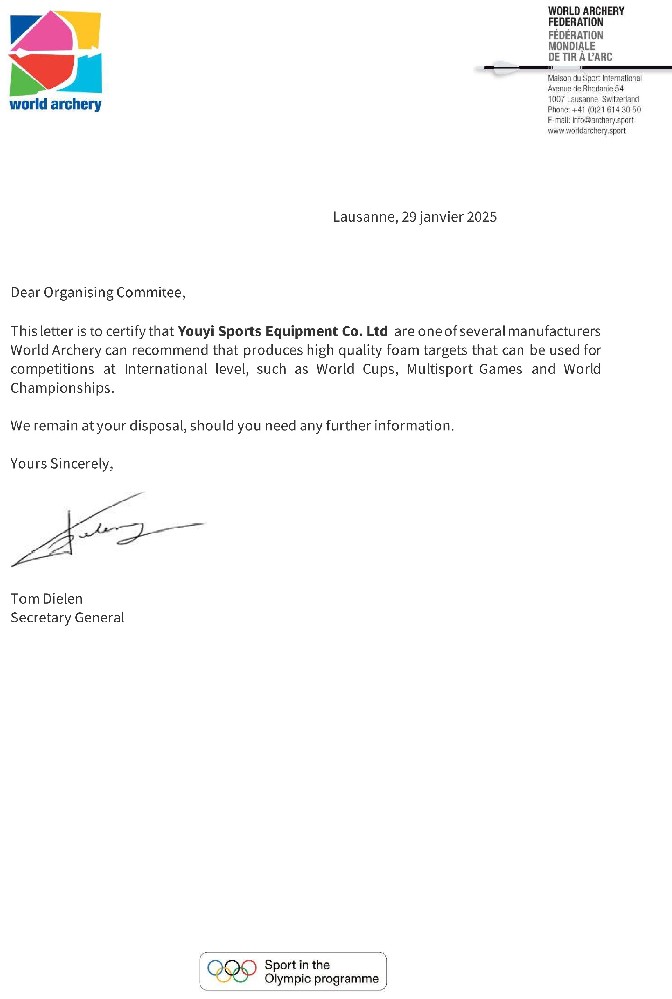 公司自主生產(chǎn)的器材先后成為2008年北京奧運(yùn)會、2010年廣州亞運(yùn)會、2011年深圳世界大學(xué)生運(yùn)動(dòng)會、2014年南京青奧會、2021年成都世界大學(xué)生運(yùn)動(dòng)會、2022年杭州亞運(yùn)會等世界知名賽事射箭器材供應(yīng)商。